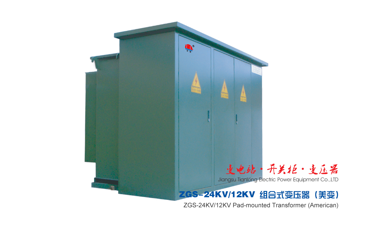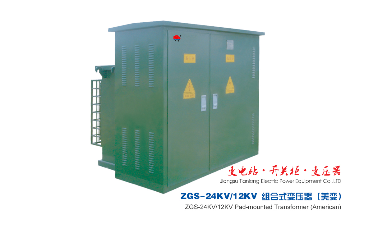 ZGS-24 and ZGS-12 series prefabricated substation, also known as the American substation, is a complete set of new power transformer equipment developed by our company on the basis of transformation of national urban network, making the optimal combination for the oil-immersed sealed power transformer and high and low voltage electrical components. Through structure optimization, the switchgear shall be miniaturized to extreme extent, which greatly reduce the occupied area of the combined transformer whose volume is only equivalent to 1/3一 1/5 of the European box-type transformers with such advantages as small volume, low noise, reliable power supply, reasonable structure, flexible for installation, easy for operation and capable of going deep into the load center to maximum extent, etc. It is widely used in residential quarters, commercial centers, stations, industrial and mining enterprises, airports, railroads, schools, hospitals, high-rise buildings and places.