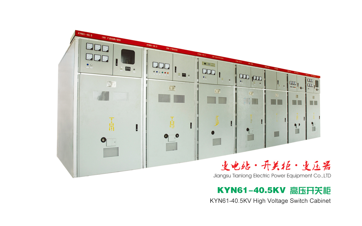 KYN61-40.5型铠装移开式交流金属封闭开关设备(以下简称开关设备)。其主要特点是柜内配用新型全绝缘真空断路器。柜体采用组装结构,提高了产品外观品质和手车与柜体的配合精度,手车推进拉出十分轻便,保证互换,并能迅速组织生产、装配,及时交货,提高装配所需占地面积的利用率,易于形成批量生产等优点。可实现闭门操作。其各项正常操作,包括断路器分合闸,断路器手车推到工作位置和退出到试验/隔离位置,以及接地开关的分合闸,都能在断路器室门关闭的条件下进行。本产品符合:GB3906《3-35KV交流金属封闭开关设备》、GB/T11022《高压开关设备和控制设备标准的共用技术要求》、IEC60298《额定电压1KV以上52KV及以下交流金属封闭开关设备和控制设备》标准。本产品用于40.5KV三相交流50Hz电力系统中,作为发电厂、变电所及工矿企业的配电室接受与分配电能之用,具有控制、保护和监测等功能。除广泛用于一般电力系统外,还可使用于频繁操作的场所。使用环境条件符合GB3906所规定的正常使用环境条件。
